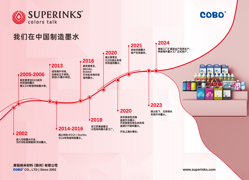 - 我们希望通过墨水技术推动打印头和打印机的发展,助力数码喷墨打印行业的发展。