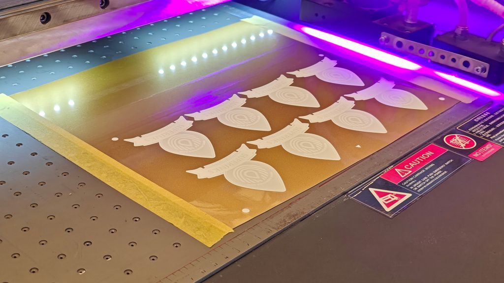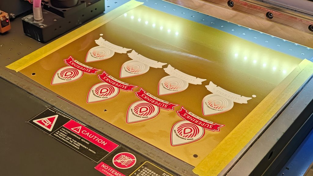 - 阳离子型:固化收缩率低(<5%,远低于自由基型的 8%-12%)、附着力更持久,但固化速度慢(5-10 秒)、成本高,仅用于高端精密打印(如玻璃纹理定制、金属铭牌蚀刻效果)。